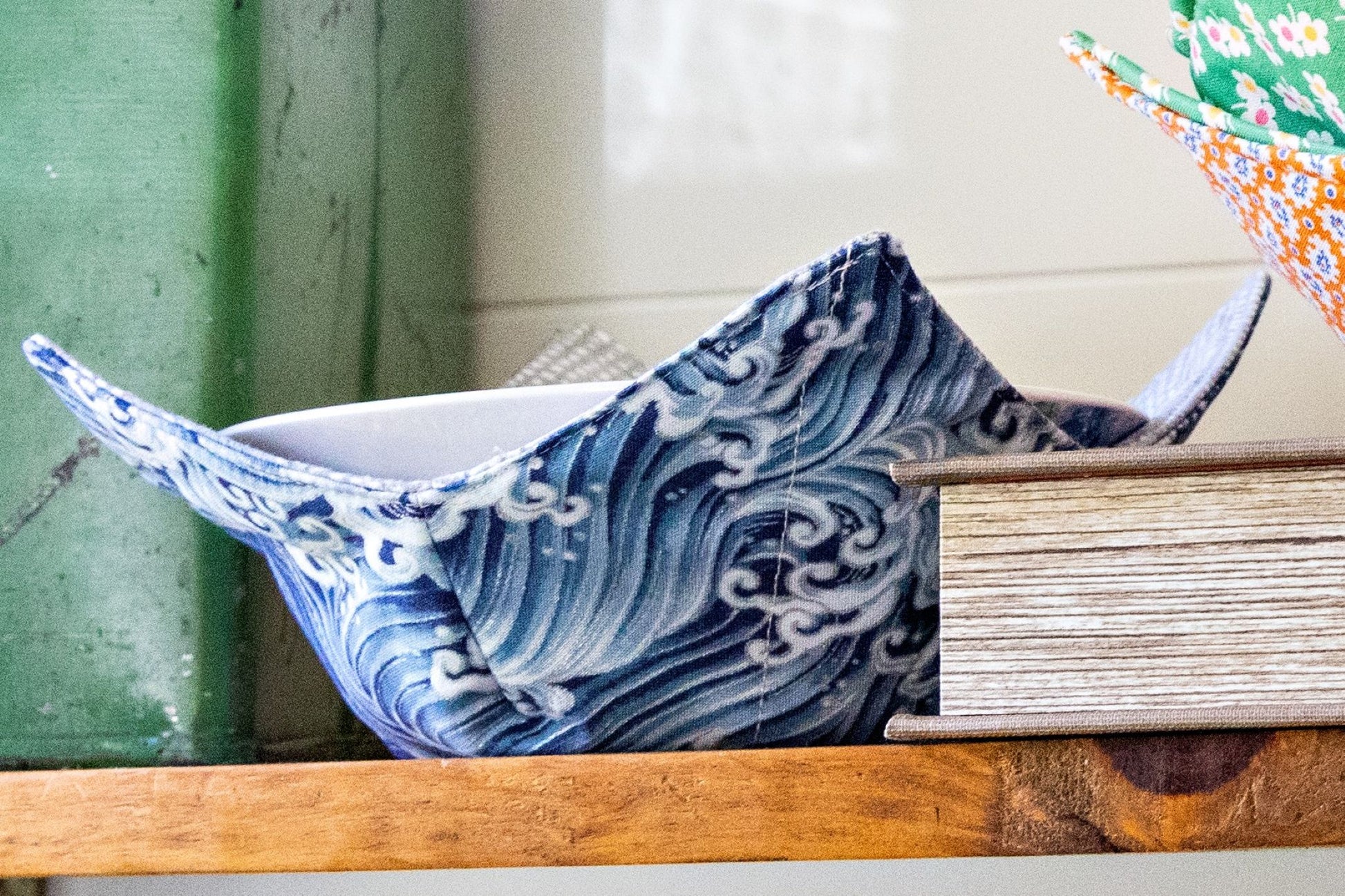 Protect your hands and surfaces with my 100% quilted cotton bowl cozy, designed for both style and function. This handcrafted cozy securely cradles your bowl, keeping your hands safe from hot or cold dishes while adding a touch of charm to your kitchen.