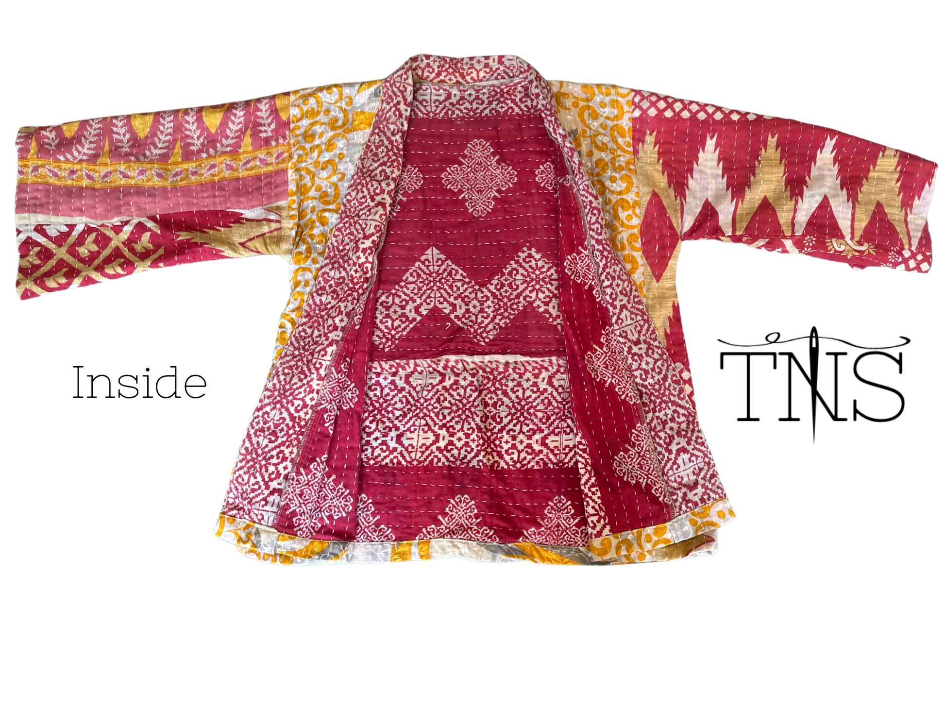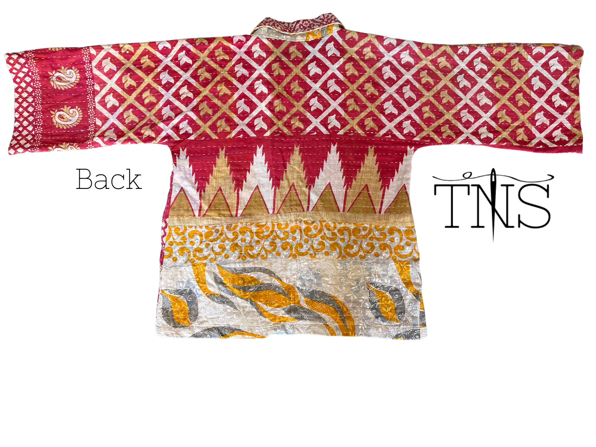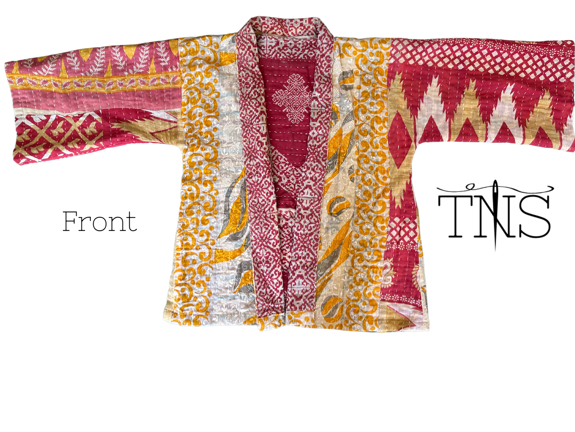 Wrap yourself in individuality with my handmade Kantha Kimono, a wearable work of art that's as sustainable as it is stylish. Carefully crafted from upcycled Kantha textiles, each kimono is a one-of-a-kind piece, with no two ever alike. Featuring layered quilting and vibrant patterns steeped in history, this kimono tells its own story.